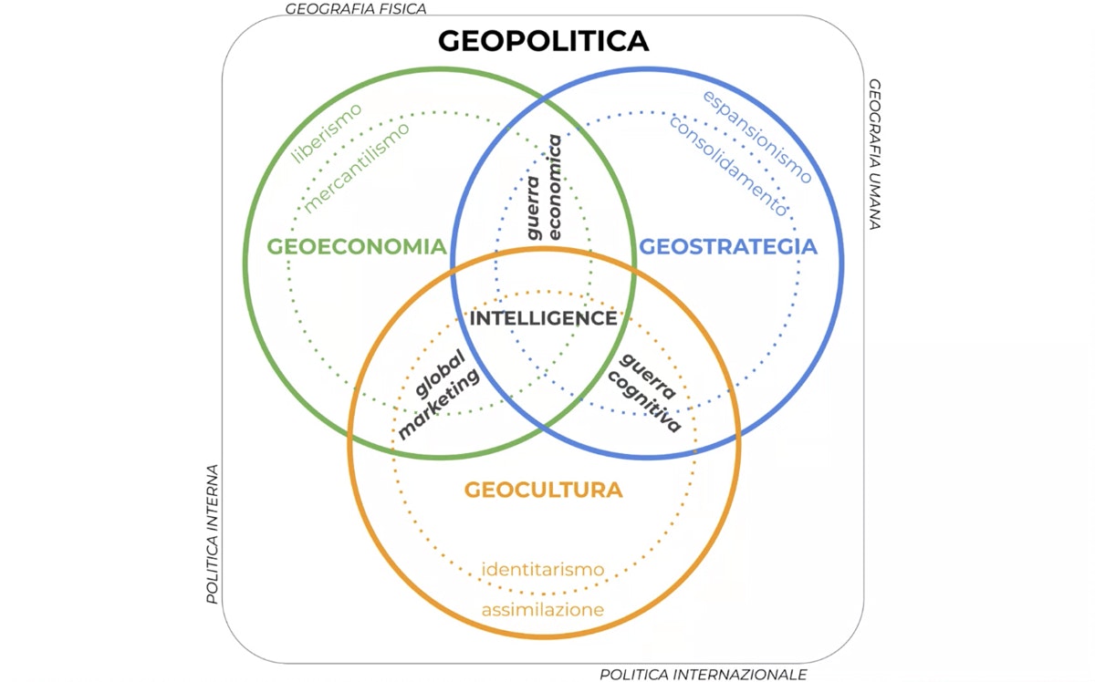 Riflessioni scaturite dal primo di un ciclo di incontri di formazione di geopolitica con Mirko Mussetti – analista e redattore della rivista Limes – che, nell'introdurre i concetti fondamentali di questa disciplina, ci ha spiegato la relazione che lega geoeconomia (la visione a breve termine), geostrategia (medio termine) e geocultura (lungo termine).